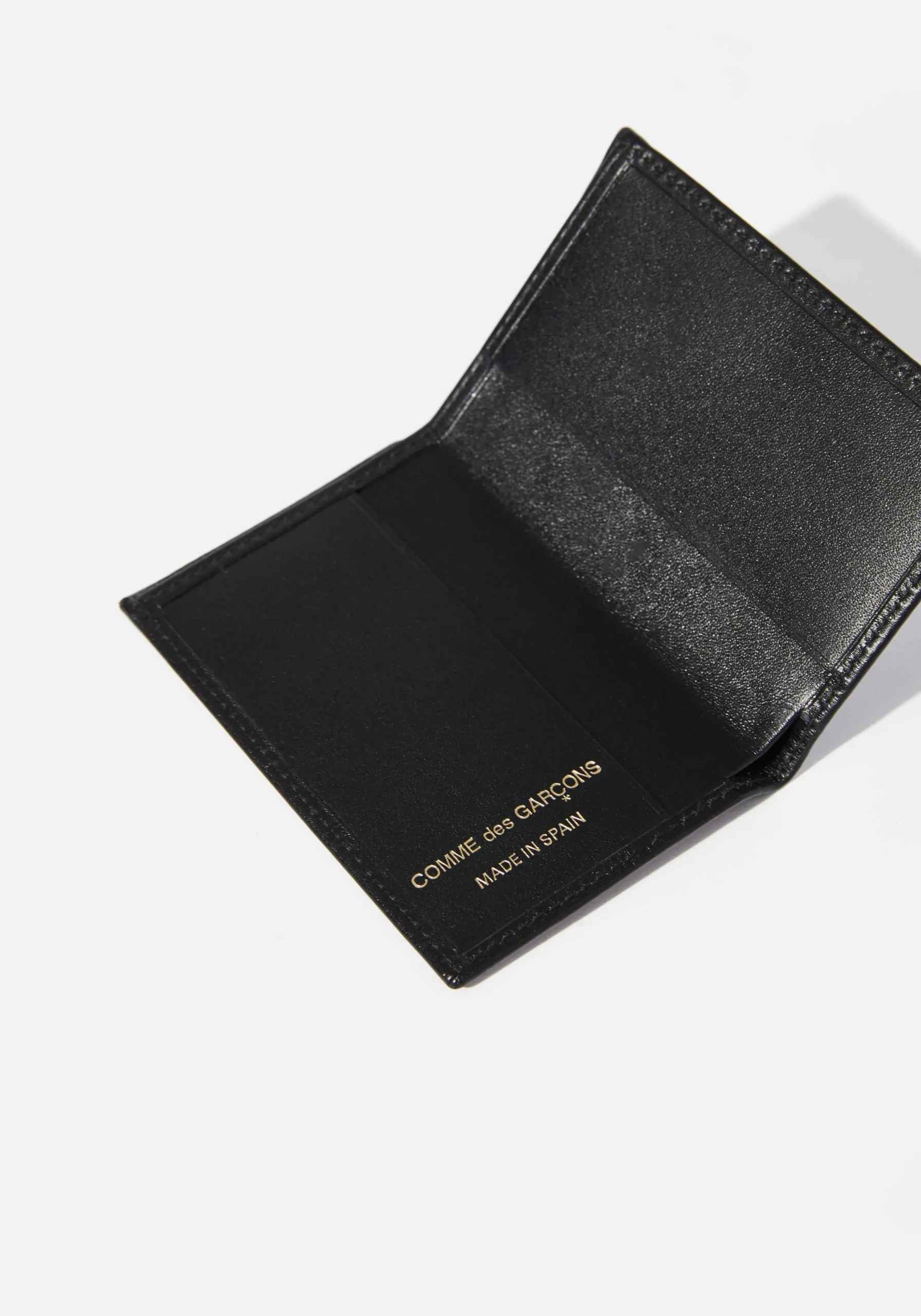 COMME DES GARÇONS CARD WALLET. – MADE FROM 100% COWHIDE LEATHER- COMPARTMENTS INCLUDE 2 CARD SLOTS AND A NOTE SECTION- FINISHED WITH A COMME DES GARÇONS LOGO ON THE INSIDE- 6CM WIDE X 10CM HIGH