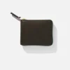 COMME DES GARÇONS CLASSIC WALLET. – MADE FROM 100% COWHIDE LEATHER- COMPARTMENTS INCLUDE THREE CARD SLOTS, COIN POUCH, AND NOTE SECTION- FINISHED WITH A GOLD ZIP AND GOLD COMME DES GARÇONS LOGO ON THE INSIDE- 11.5CM W X 10CM H X 2.5CM D